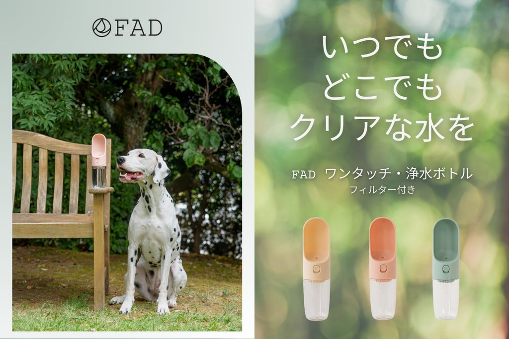 片手で給水することができる、浄水フィルター付きウォーターボトル